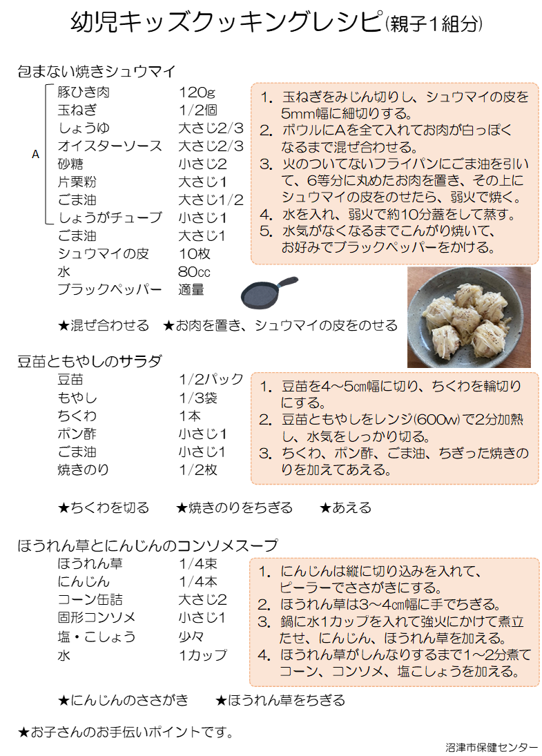 令和7年6月14日、11月8日に開催した幼児キッズクッキングのレシピです。